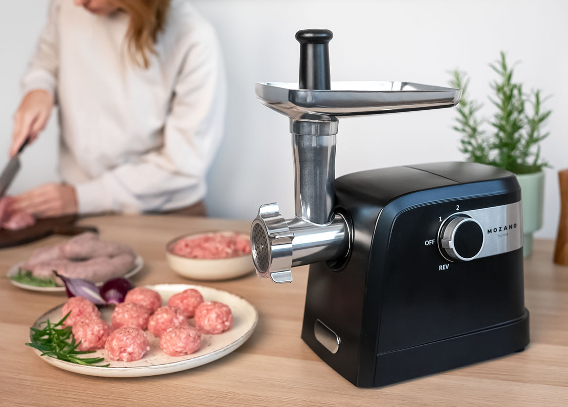 Maszynka do mielenia Mozano to wszechstronne urządzenie do mielenia mięsa, szatkowania oraz przygotowywania wyrobów masarskich. Maszynka świetnie sprawdzi się w każdej kuchni. Jest mocna, wytrzymała i energooszczędna. Metalowa konstrukcja głowicy gwarantuje długotrwałe użytkowanie. Akcesoria dołączone do zestawu sprawiają, że maszynka staje się bardziej wszechstronna i pozwala na przygotowanie nowych, wyjątkowych dań w domu.